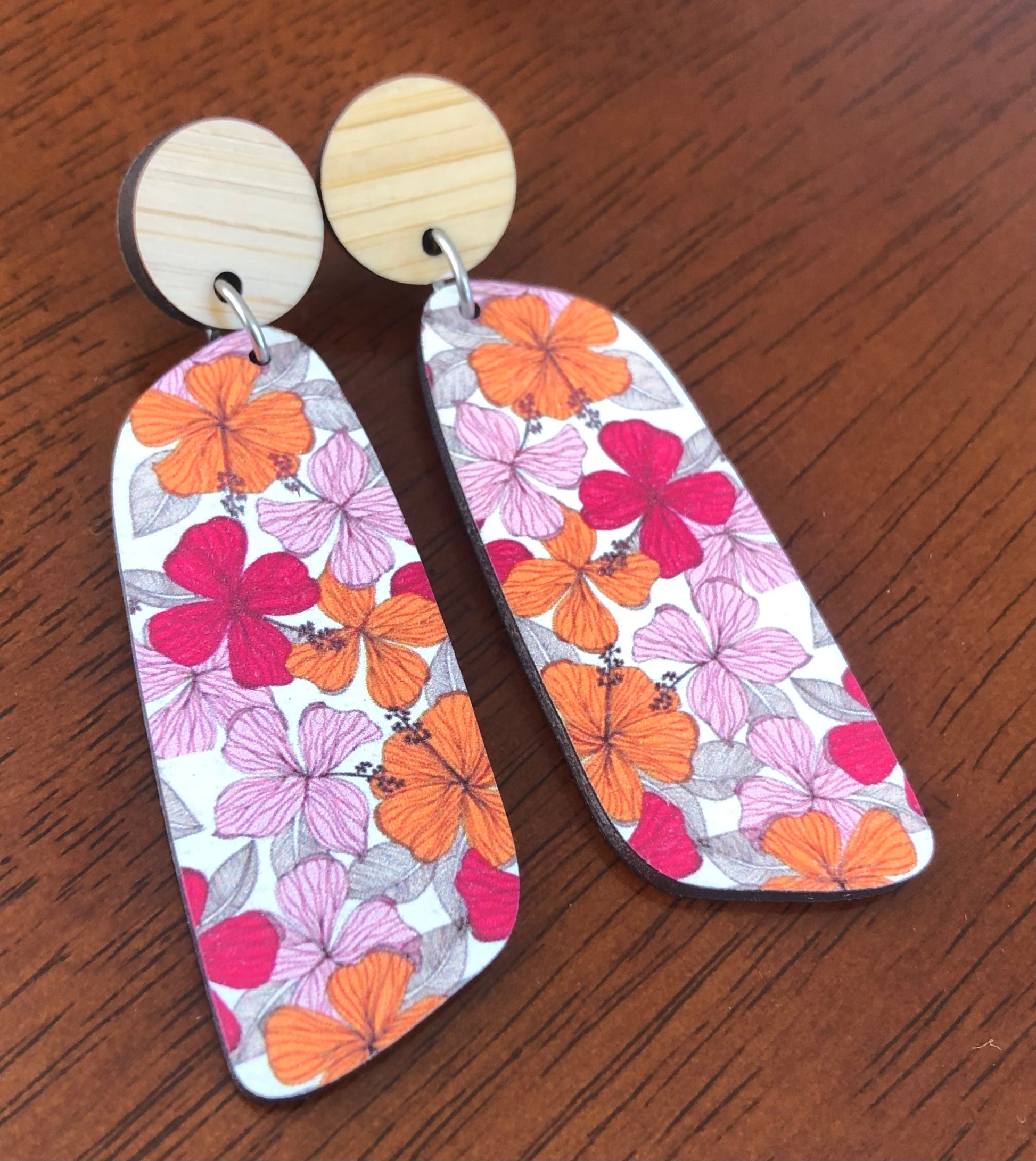 These bright earring pieces are approximately 22mm wide and 55mm high. The bamboo tops are approximately 15mm in diameter.