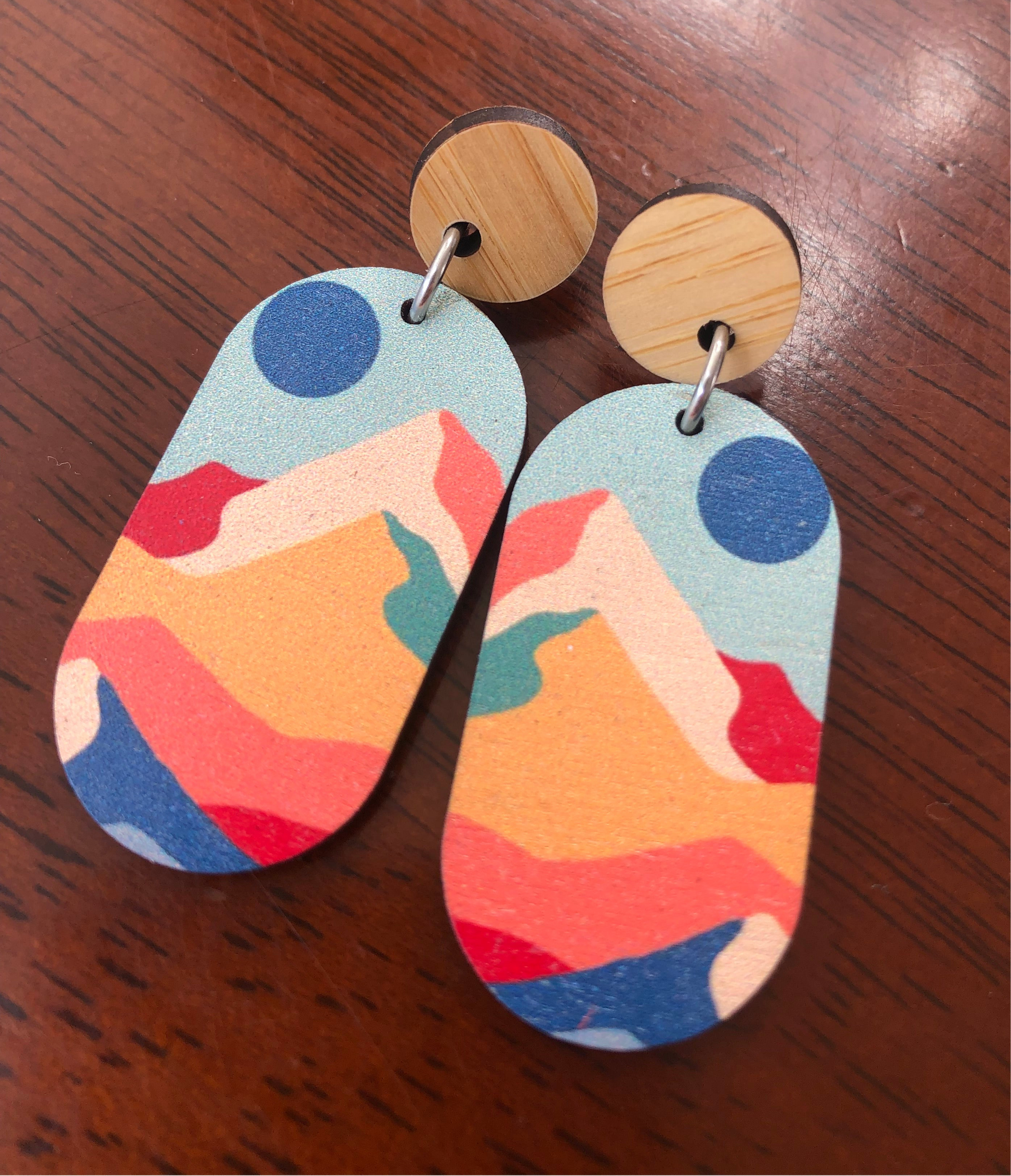 These retro earring pieces are approximately 20mm wide and 38mm high. The bamboo tops are approximately 12mm in diameter.